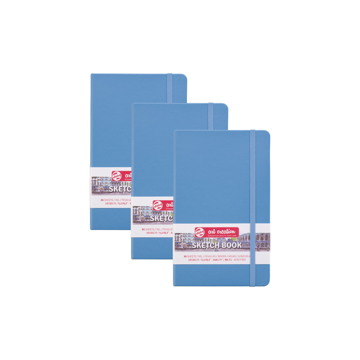 Talens Art Creation Sketchbook, 80 Sheets, 90lbs, Lake Blue Cover, 5.1" x 8.3", Pack of 3