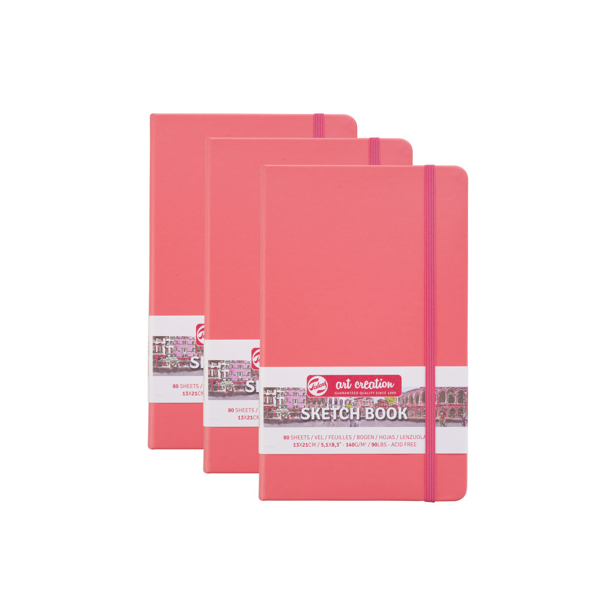 Talens Art Creation Sketchbook, 80 Sheets, 90lbs, Coral Red Cover, 5.1" x 8.3", Pack of 3