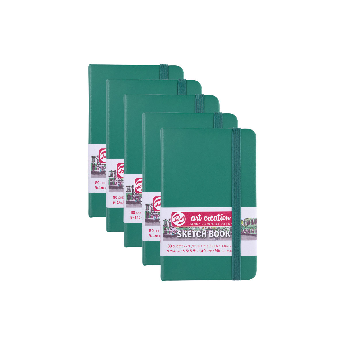 Talens Art Creation Sketchbook, 80 Sheets, 90lbs, Forest Green Cover, 3.5" x 5.5", Pack of 5