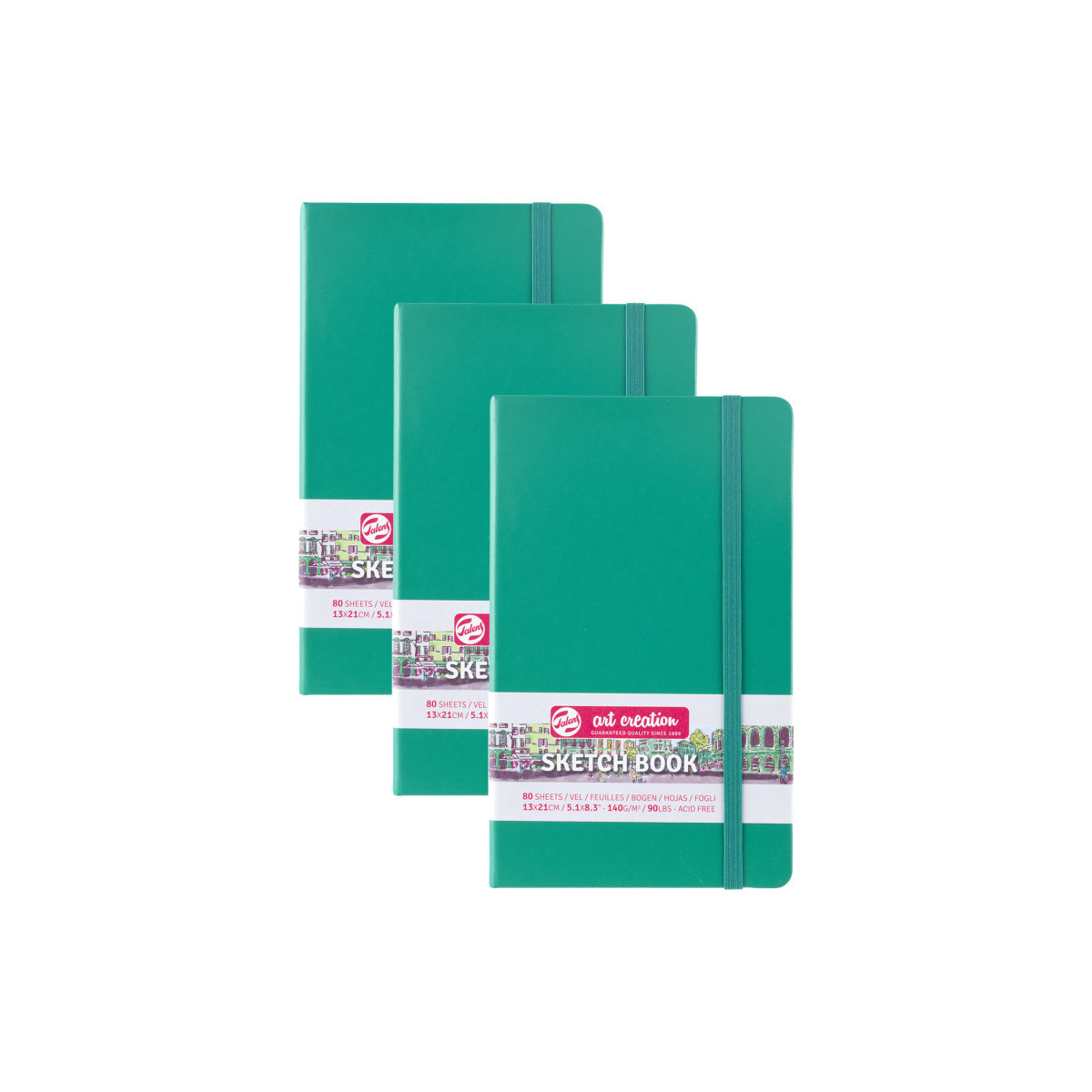 Talens Art Creation Sketchbook, 80 Sheets, 90lbs, Forest Green Cover, 5.1" x 8.3", Pack of 3