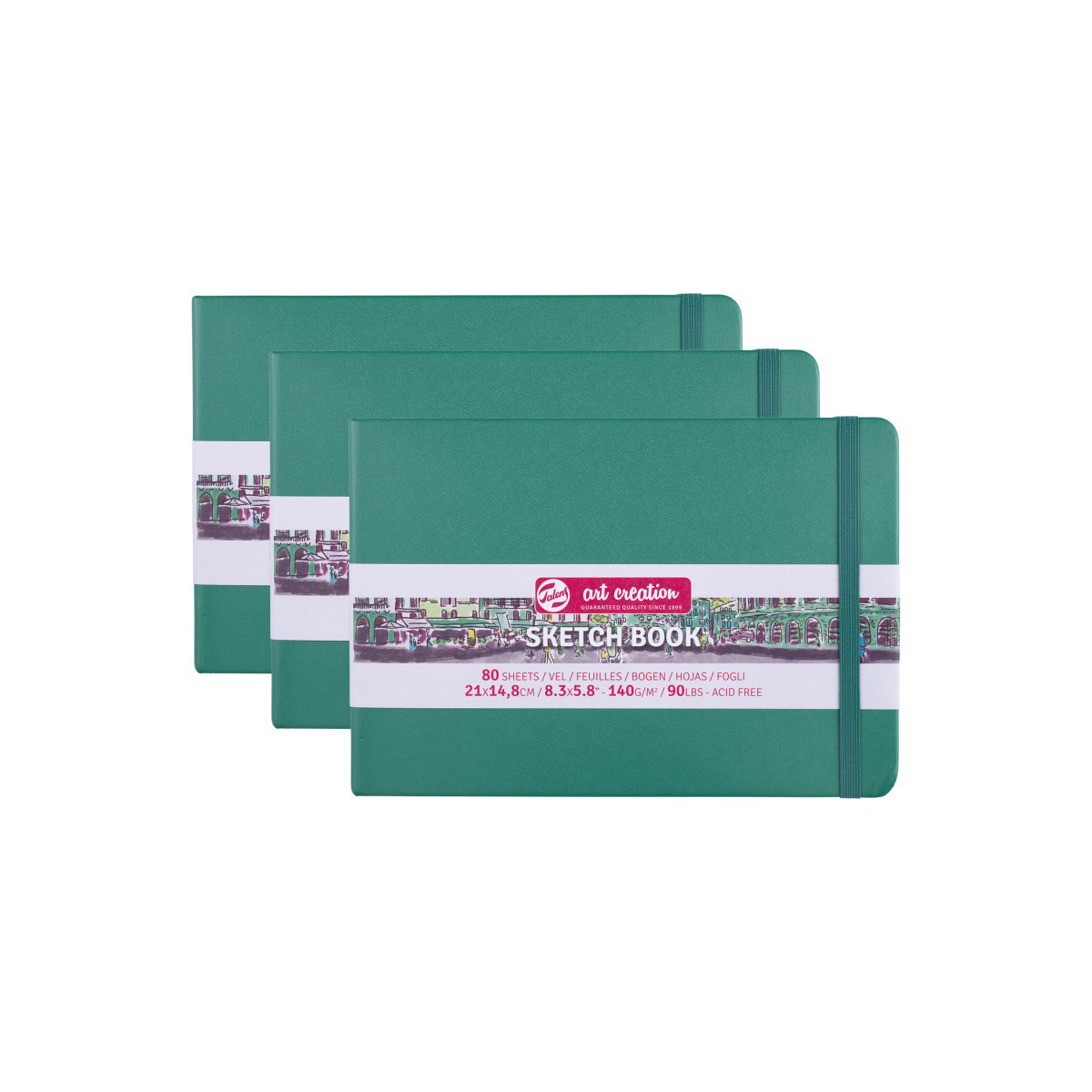 Talens Art Creation Sketchbook, 80 Sheets, 90lbs, Forest Green Cover, 8.3" x 5.8" (A5), Pack of 3