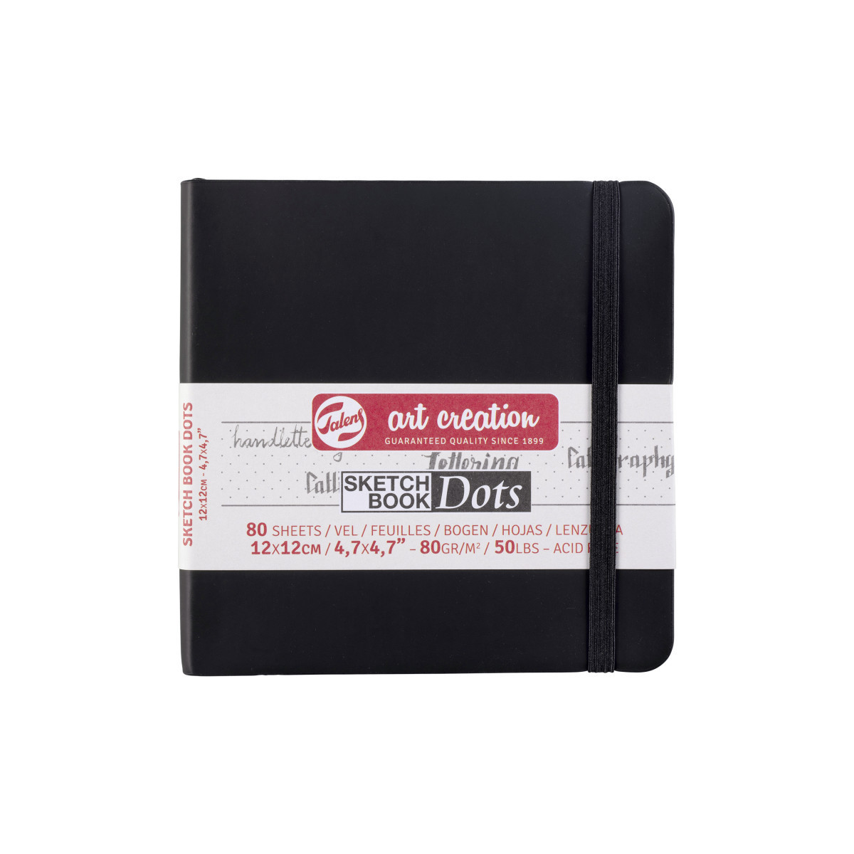 The dotted sheets of these sketchbooks are a wonderful compromise between blank and ruled or gridded sheets; they offer you a guide without taking attention away from what you create. With these evenly spaced dots, you can experience the insurance of lines and the freedom of a blank page in one sketchbook! Use these books for anything you want: taking notes, planning, drawing diagrams, mind maps, sketching, bullet journaling, lettering, calligraphy, you name it! They are suitable for pencil and ink and come in a variety of sizes. Talens Art Creation dotted sketchbooks contain 80 cream-colored, dotted sheets of 80 g/m², feature a soft, stylish black cover and include a ribbon bookmark and elastic closure band.