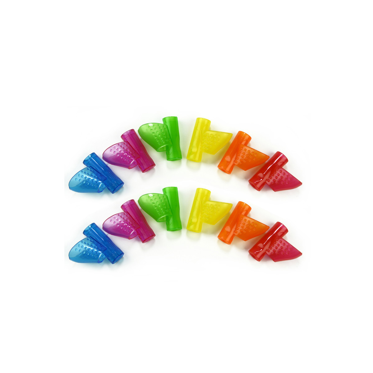 The Pointer Grip is designed for proper pencil grip development. The model is recommended particularly for the Early Childhood stage. The Pointer Grip offers the perfect support for the pointer finger, and once that position is secured, the other two fingers will find naturally the correct position. The Pointer Grip is the optimal aid that will point the handwriting in the right direction! Each pack includes 12 grips in assorted colors.
