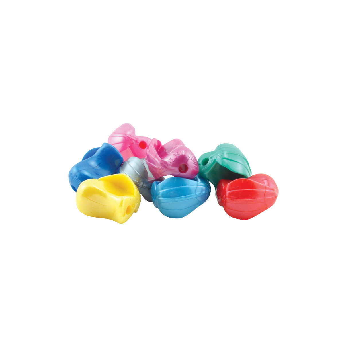 Includes 12 grips in assorted metallic colors.