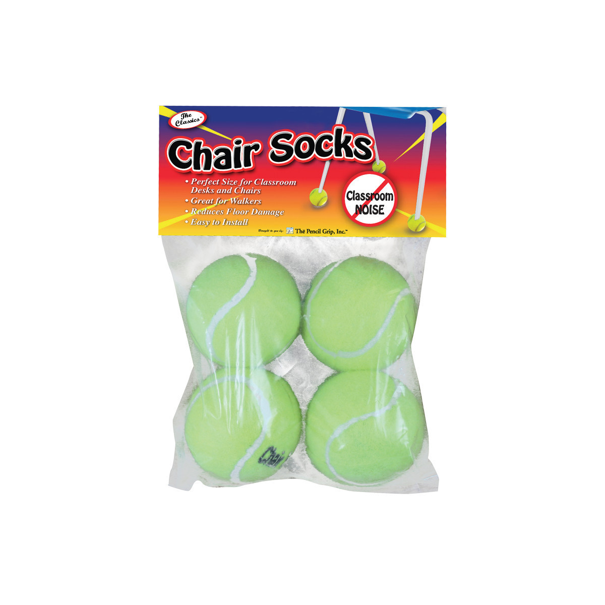 Put an end to classroom clatter with Chair Sox! These great products eliminate the distracting noises of shuffling chairs and desks in a classroom setting. The chair sox come pre-cut and ready to put on. Assembly is easy, just slip it over the foot of the chair, no tools required. Fits all standard classroom style chairs and desk legs.