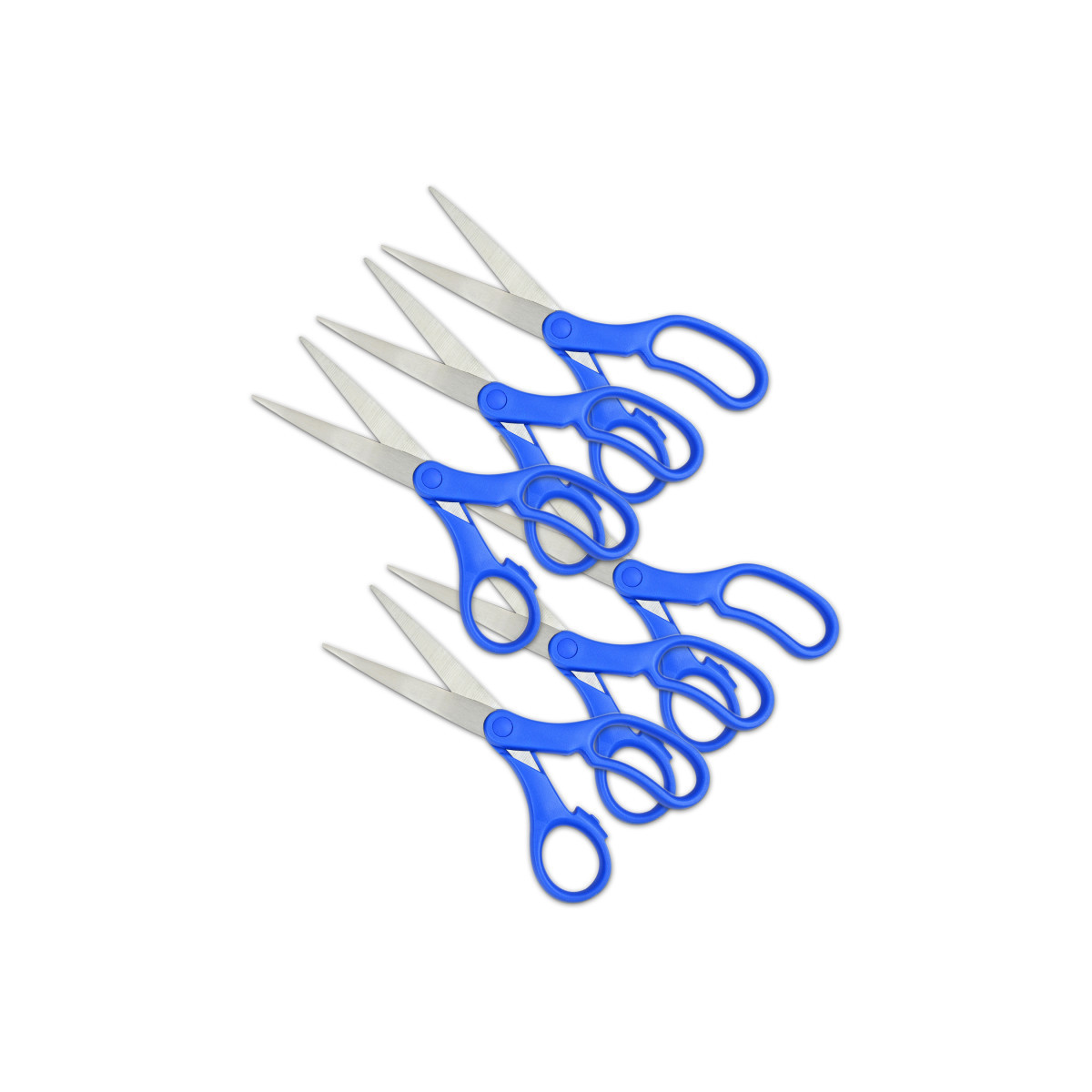 High-quality 8 Inch All Purpose Scissors. The ergonomic shape is easy to hold allowing the user to cut with safety and precision. Stainless Steel Blades. Soft Grip Handles for Left and Right Hand Users. Easy to use. Scissors measure approximately 8" in length. Sold as a pack of 6 scissors.