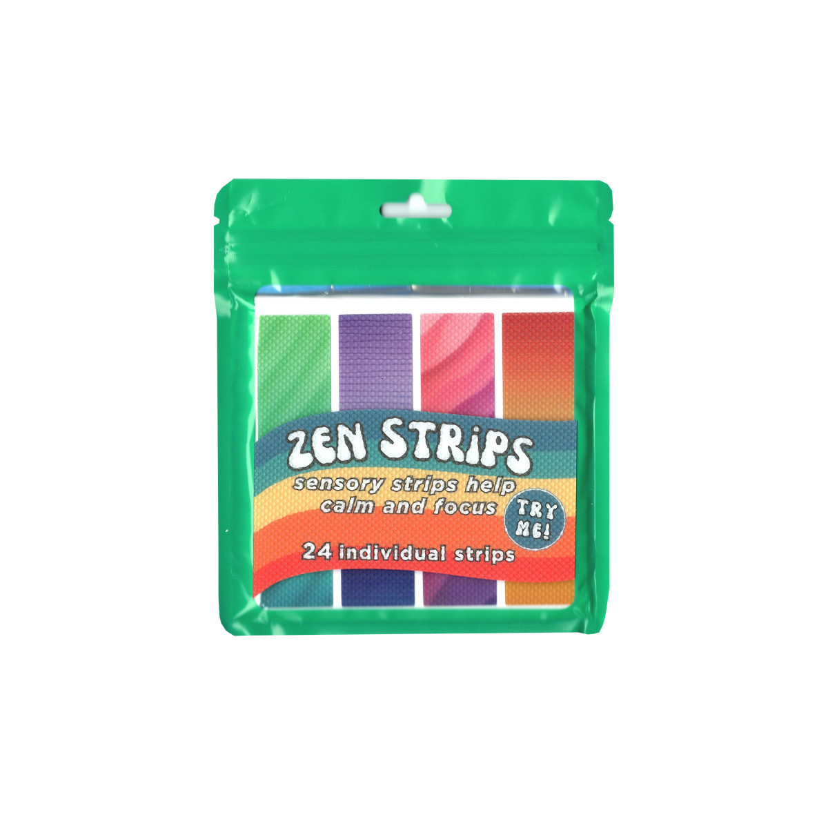 Sensory strips help calm and focus! Simply touch, swipe, scratch or fidget with Zen Strips to manage stress, boost concentration and enjoy a calming effect. This set includes 24 Zen Strips with a raised, bumpy diamond texture in green, purple, pink and orange gradient shades. With an easy peel, stick, and press application, use on your everyday items including smartphones, laptops, tablets, or even water bottles. Manufactured using non-toxic, child-friendly materials. Zen Strips offer a compact, lightweight, and non-invasive method to improve focus and self-regulate emotions by providing tactile sensations while fidgeting.