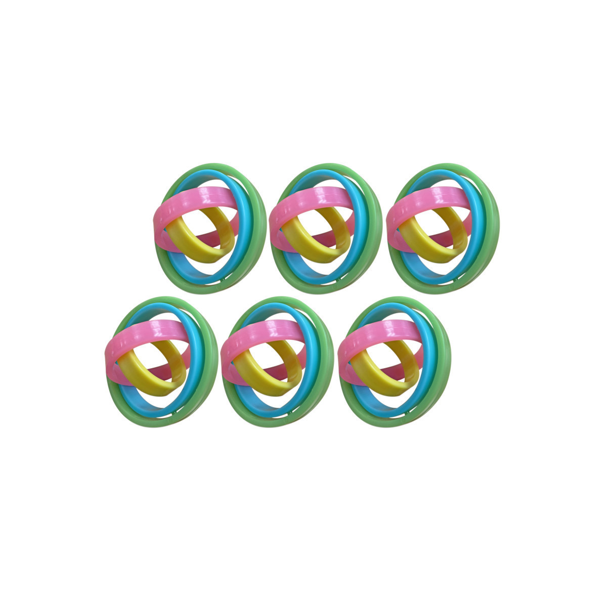 Spin the colorful plastic rings in fascinating ways with the touch of a finger! Orrby is completely silent and feels great in your hands. This mindless fidget brings together the science of gyroscopes and the satisfaction of absent-minded fidgeting! Sized for easy gripping and fine motor practice. Reduce stress and improve memory. The fidget toy that twists, spins and rotates. Sold as a pack of 6.