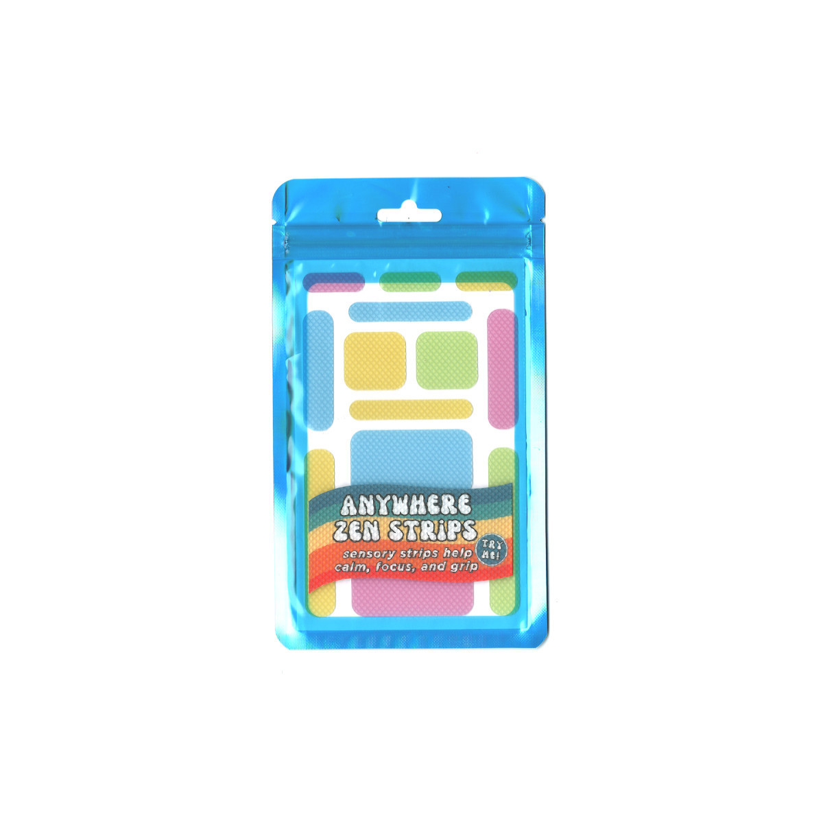 Sensory strips help calm and focus! Simply touch, swipe, scratch or fidget with Zen Strips to manage stress, boost concentration and enjoy a calming effect. Various sizes allow for even more possibilities! With an easy peel, stick, and press application, use on your everyday items including smartphones, laptops, tablets, or even water bottles. The various sizes work great for any item! Manufactured using non-toxic, child-friendly materials. Zen Strips seamlessly integrate into your daily surroundings, offering a discreet presence that goes unnoticed, whether you're studying, at the office, or navigating through your everyday activities. Compact and lightweight, offering a convenient method for students to self-regulate emotions and focus by providing tactile sensations while fidgeting while also providing calmness. Includes 78 Anywhere Zen Strips (13 per set, 6 sets) with a raised, bumpy diamond texture in pastel pink, green, yellow and blue pieces.
