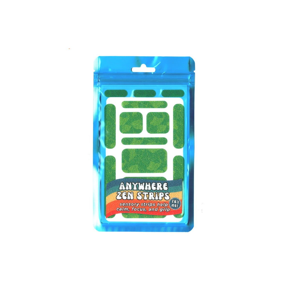 Sensory strips help calm and focus! Simply touch, swipe, scratch or fidget with Zen Strips to manage stress, boost concentration and enjoy a calming effect. Various sizes allow for even more possibilities! With an easy peel, stick, and press application, use on your everyday items including smartphones, laptops, tablets, or even water bottles. The various sizes work great for any item! Manufactured using non-toxic, child-friendly materials. Zen Strips seamlessly integrate into your daily surroundings, offering a discreet presence that goes unnoticed, whether you're studying, at the office, or navigating through your everyday activities. Includes 78 Anywhere Zen Strips (13 per set, 6 sets) with a raised, grainy texture with leaf patterns.