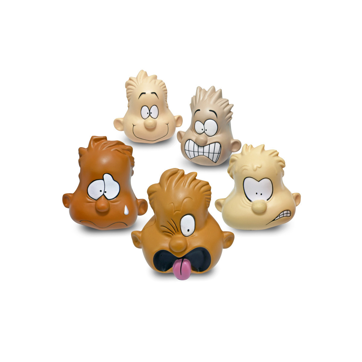 Five fun faces to squish! Feeling Heads relieve stress and open up communication to talk about feelings. Children and adults alike love to play with these squeezable faces! Toss them around, discussing each feeling. Full set includes: Happy, Shocked, Disgusted, Sad, and Anxious.