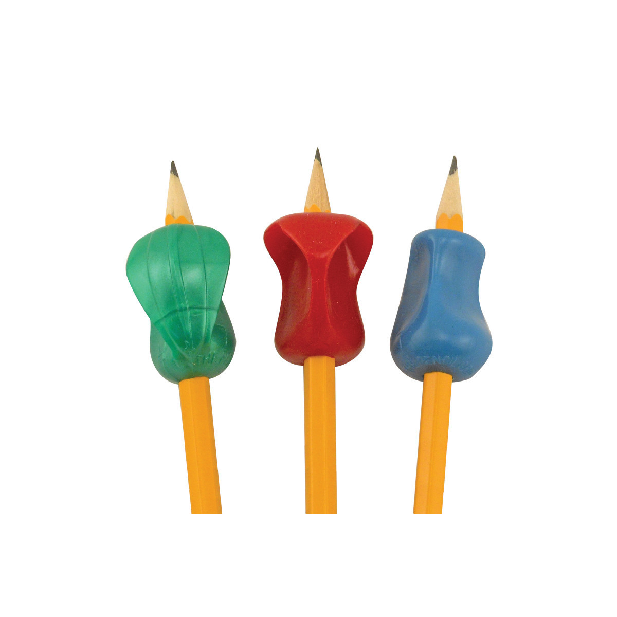 The 3 Step Training Kit contains 3 premium Pencil Grips, 1 each of The Crossover Grip, The Pinch Grip and The Pencil Grip in assorted colors. For best results, use The Crossover Grip with adult supervision for training purposes. The "super hero cape" over the fingers provides maximum structure and reinforcement of proper positioning. Next, The Pinch Grip is used on all writing instruments for transition. The unique partial "wings" allow for both structure and freedom. Finally, graduation with The Pencil Grip! This grip can be used on all utensils and writing instruments for a lifetime of comfort and control. Individual grip styles are available for purchase separately.