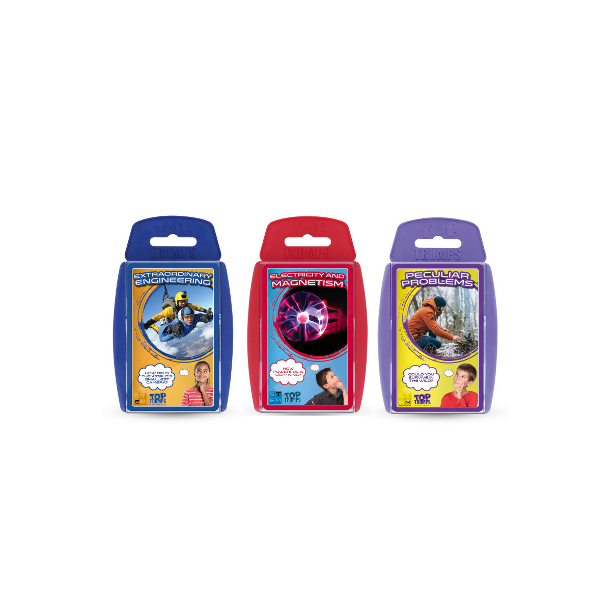 TOP TRUMPS brings your favorite subjects to life across TOP TRUMPS Peculiar Problems, Extraordinary Engineering, and Electricity and Magnetism!