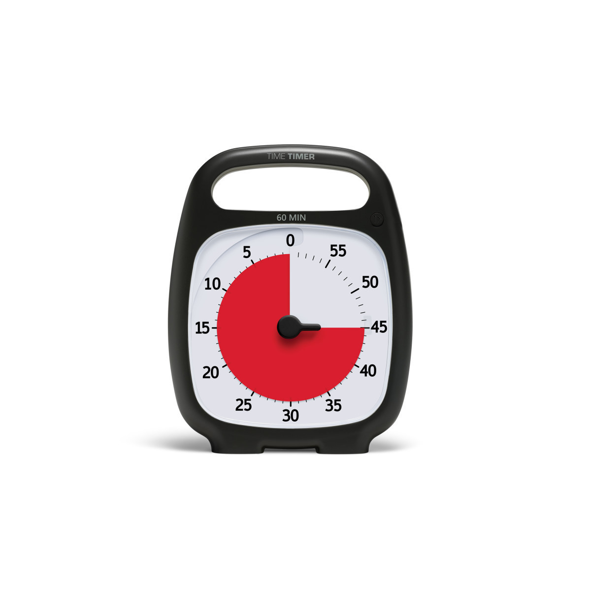 The award-winning Time Timer PLUS® is a high contrast visual timer line available in 5-minute, 20-minute, 60-minute, and 120-minute versions. The Time Timer PLUS® includes a protective lens, on-the-go handle, volume control dial, and easy-to-read numbers, making it ideal for active kids or a day full of meetings. The Time Timer PLUS® you know and love will now feature a pause option, an improved motor, a larger knob for dexterity, reduced packaging materials, and overall package volume reduced by 25%.