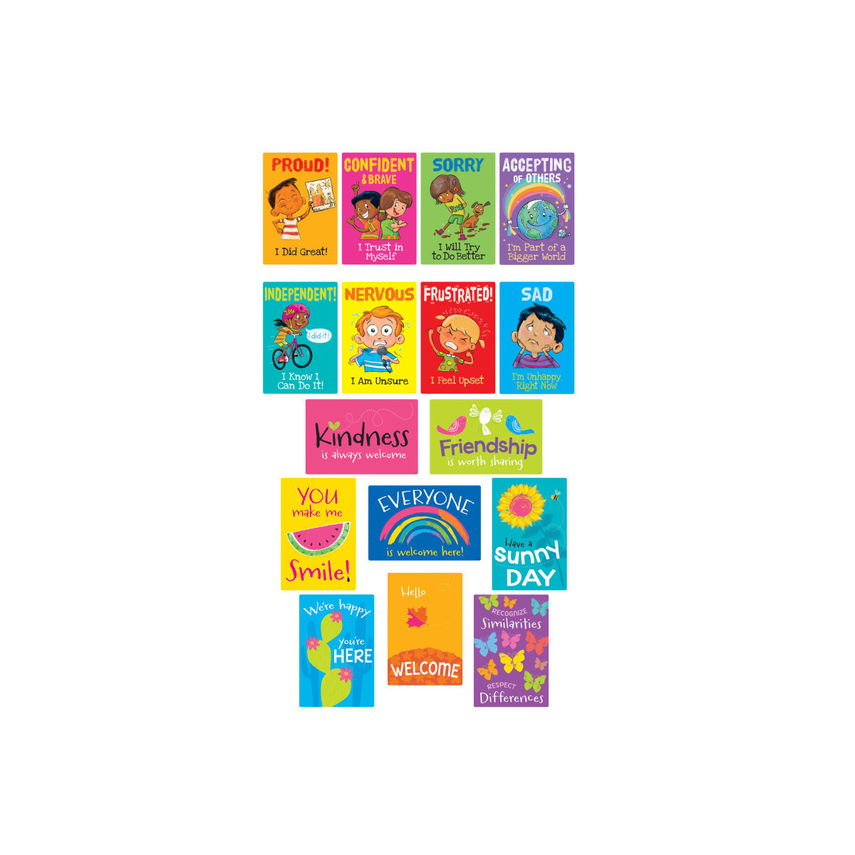 With the I Feel… Learning Set and the A Welcome Place Learning Set, you can establish spaces that promote emotional awareness, inclusivity, and meaningful conversations. These versatile posters are ideal for educational institutions, community centers, homes, and various other settings, serving as powerful tools for creating environments where everyone feels heard, understood, and welcome.