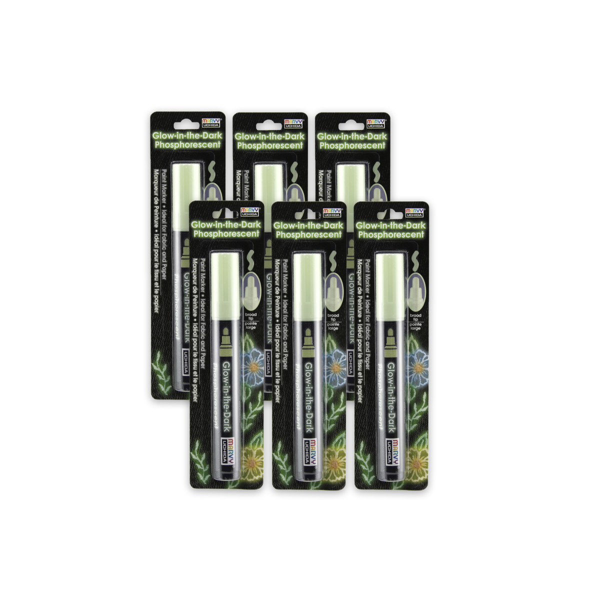 This Glow in the Dark Fabric Marker is perfect for so many projects. Use it to make unique costumes, fun camp shirts, and decorations. The fabric marker is also great for other crafts. Use it to decorate backpacks, sleeping bags, t-shirts, pajamas. The markers also work on paper. When dry expose the area to light to make it glow. Heat setting recommended. Sold as a pack of 6 markers.