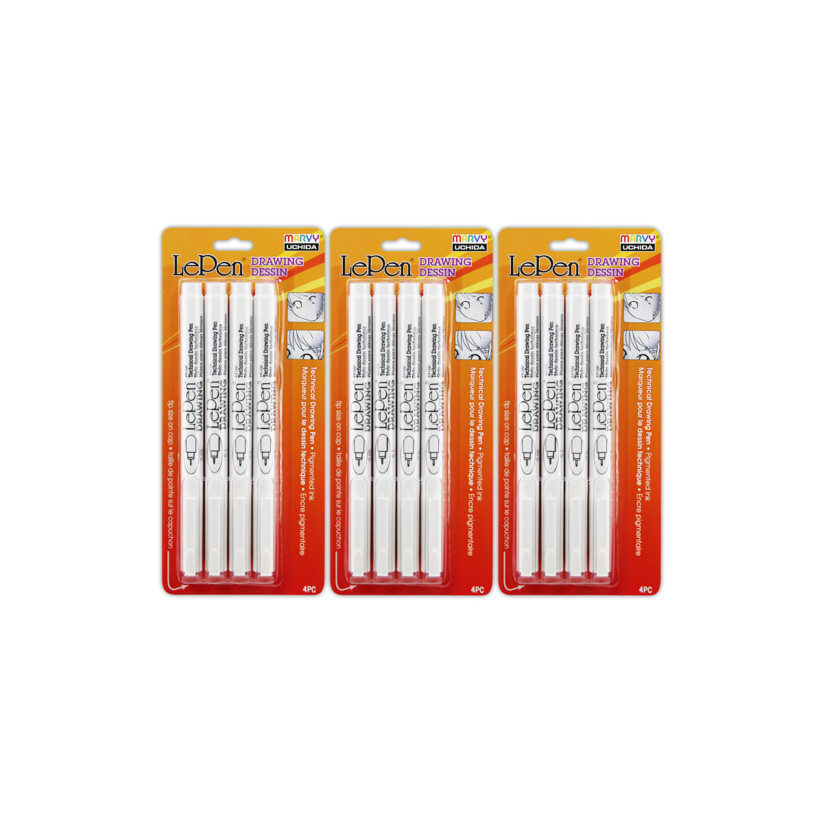This is the perfect pen for drawing anime and manga comics. The Le Pen is great for drawing artwork and pairs well with the Le Plume Permanent Markers for coloring in. The Le Pen comes in black ink only in 7 different point sizes and dries permanent . Each pack includes 4 pens. Sold as 3 packs for a total of 12 pens.
