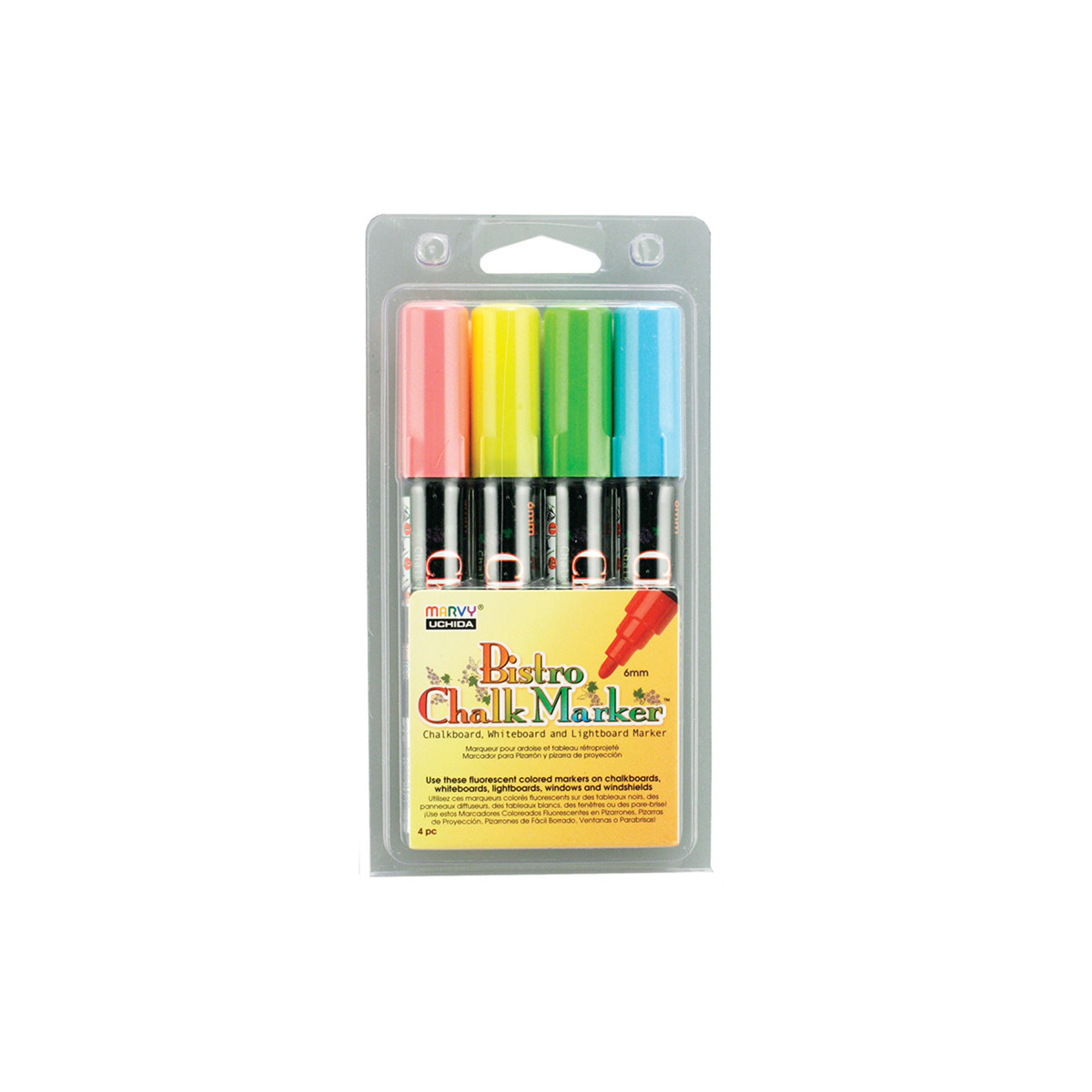Use Bistro Chalk Markers on chalkboards, light boards, windows and windshields. A wonderful way to create chalkboard art to attract attention and increase sales.They are opaque, water based, pigmented, erasable with a damp cloth. The markers are all made in Japan from the highest quality Japanese ingredients with customer satisfaction as the prime goal. These state of the art markers are also light-fast, meaning they do not deteriorate when exposed to sunlight and they retain the most vibrant colors compared to all other chalk markers in the market!