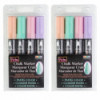 Use Bistro Chalk Markers on chalkboards, light boards, windows, and most non-porous surfaces. A wonderful way to create chalkboard art to attract attention. They are opaque, water based, pigmented, erasable with a damp cloth. Each pack includes 4 markers: pale violet, peppermint, blush pink and pastel peach. Sold as 2 packs for a total of 8 markers.