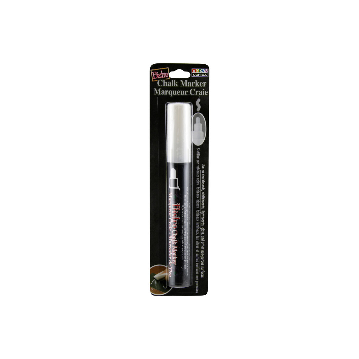 Bistro Chalk Markers are the perfect every day chalk marker. These chalk markers work on chalkboards, dry erase boards, light boards, windows, windshields, and other non-porous surfaces so you can write or create art virtually anywhere. Sold individually.