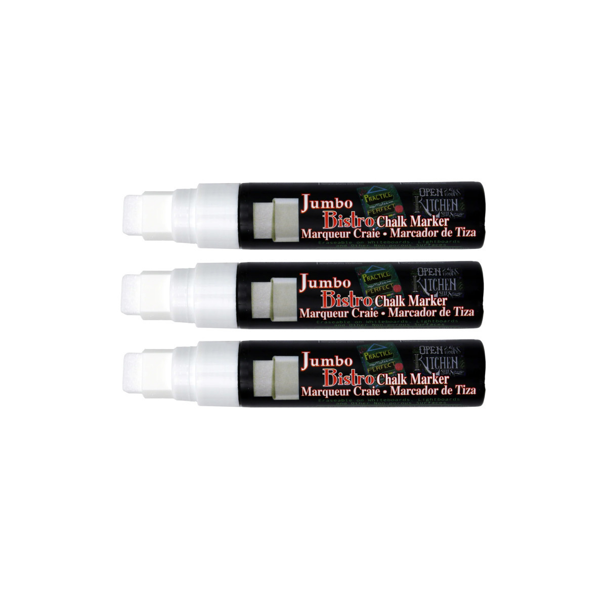 Use Bistro Chalk Markers on chalkboards, light boards, windows and windshields. A wonderful way to create chalkboard art to attract attention and increase sales. They are opaque, water based, pigmented, erasable with a damp cloth. The markers are all made in Japan from the highest quality Japanese ingredients with customer satisfaction as the prime goal. These state of the art markers are also light-fast, meaning they do not deteriorate when exposed to sunlight and they retain the most vibrant colors compared to all other chalk markers in the market! Pack of 3.