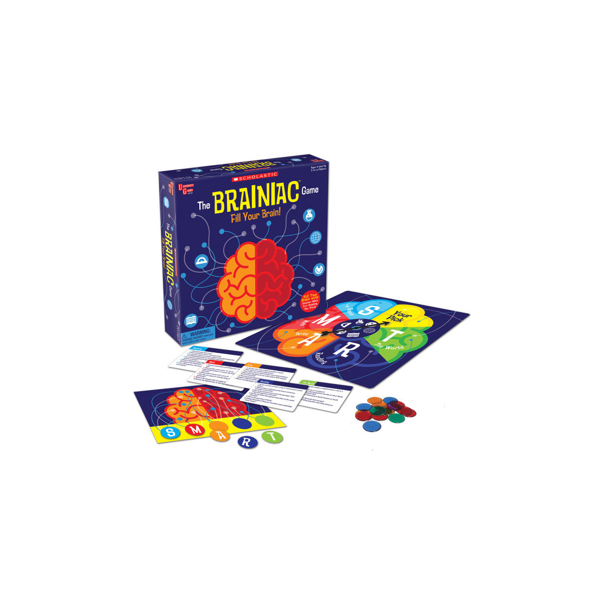In The Scholastic Brainiac Game, players spin the SMART Spinner, then compete to answer questions in five subject areas: Science, Math, Arts, Reading, and The World. Each Question Card has six different questions tailored to grades 1 to 6, so that players answer questions corresponding to their grade levels. The first player to fill his or her brain with SMART Tokens wins!