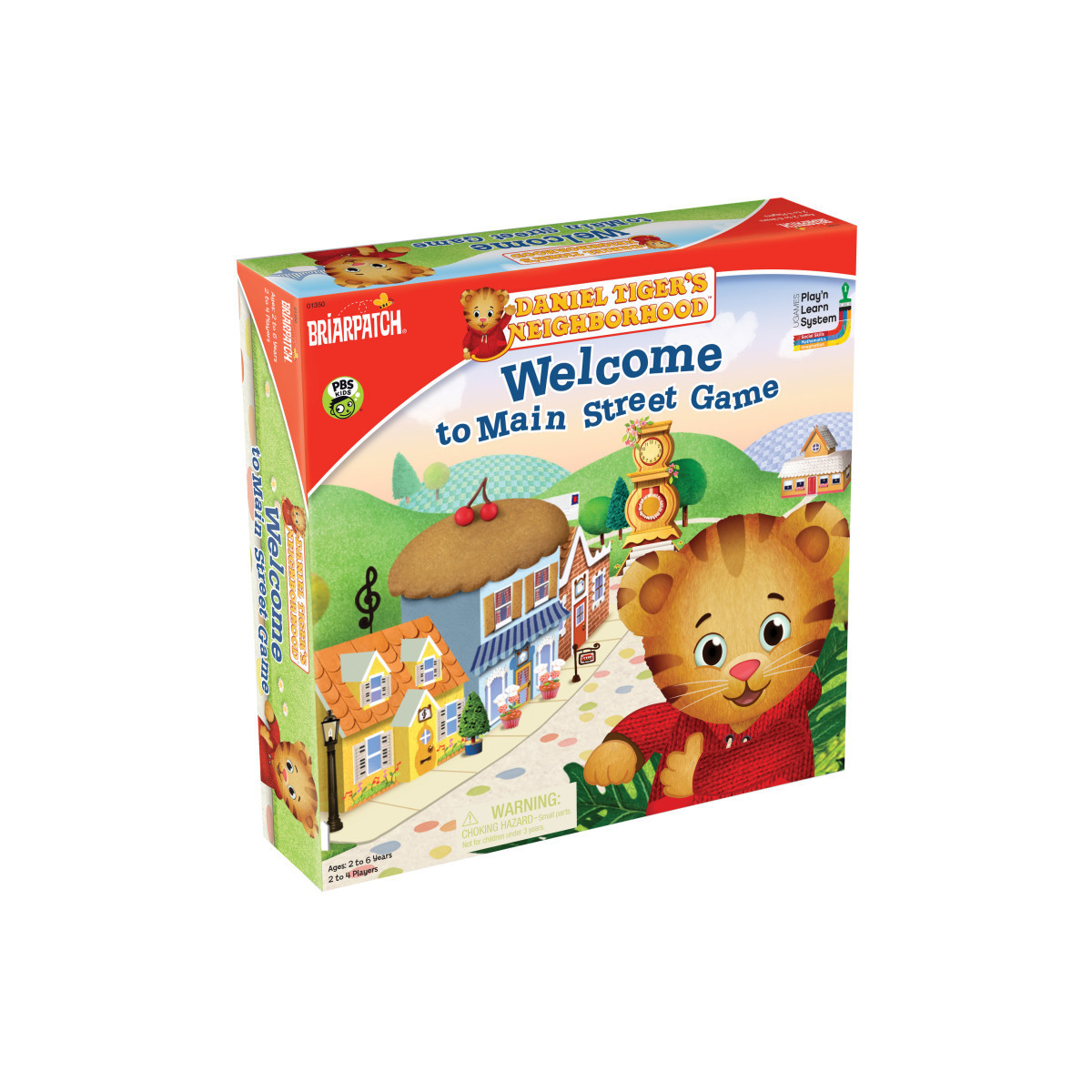 In the animated preschool series on PBS, Daniel Tiger and his friends O the Owl, Katarina Kittycat, Prince Wednesday, and Miss Elaina go on fun adventures through the Neighborhood of Make-Believe. In Welcome to Main Street, players join Daniel Tiger and his friends as they make their way through the Neighborhood of Make-Believe. Players stop by shops on Main Street to collect items for their backpacks, always remembering to say "thank you!" Encourages interactive gameplay and builds social skills. Reinforces simple counting and coordination. For 2-4 players ages 3 and up. Contents: 20 Thank You Cards, 4 Character Moving Pieces, Game Board with 5 Pop-Up Pieces, 20 Gift Tokens, Spinner, 4 Backpack Cards, and Instructions.