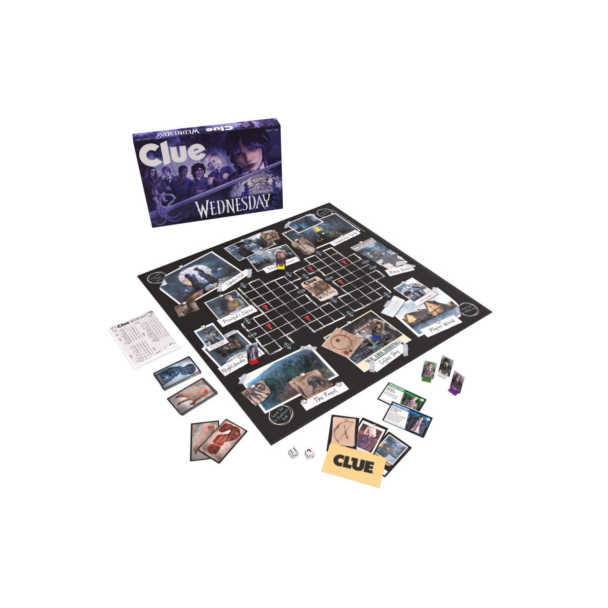 INSPIRED BY THE WEDNESDAY ADDAMS Netflix Series: Uncover a dark and modern twist on the classic mystery game with CLUE: Wednesday. Navigate the eerie halls of Nevermore Academy and outsmart the dangerous Hyde before he strikes again!