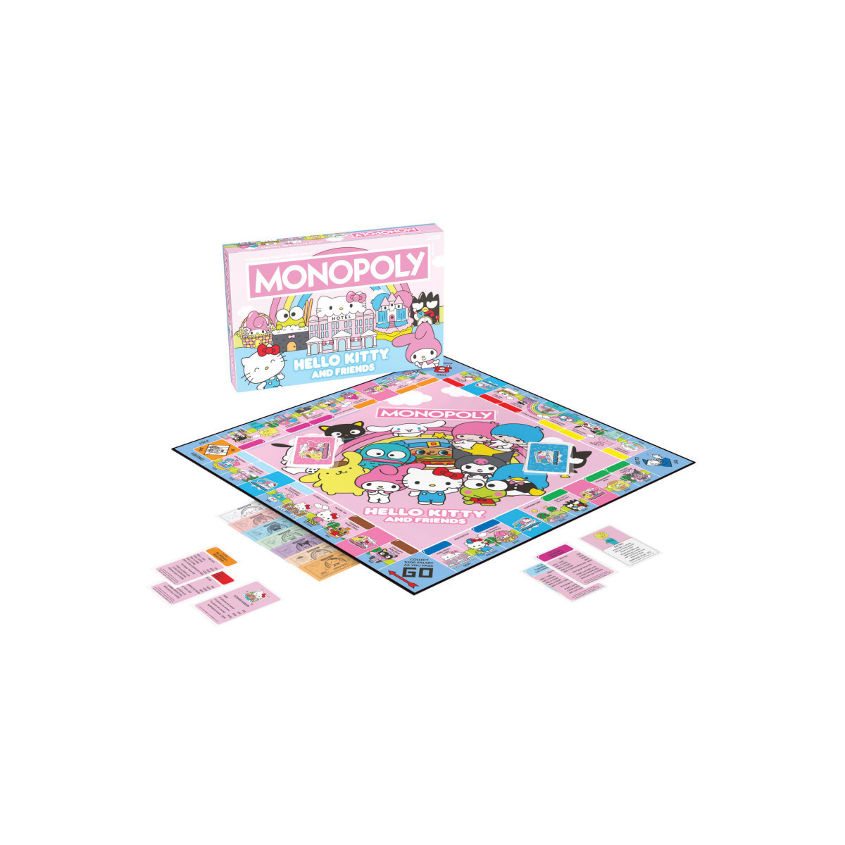 "You can never have too many friends!" Live by the words of Sanrio's universally adored icon and join Hello Kitty in her colorful world with MONOPOLY: Hello Kitty and Friends! Buy, sell, and trade locations where all your favorite characters work and play in this all-new, custom version of the classic game featuring My Melody, Keroppi, Badtz-Maru, Chococat, Cinnamoroll, and many others. Six collectible tokens feature HELLO KITTY®AND FRIENDS as the cutest vehicles, and Celebrations and Adventures are in store as you collect Kuromi's Candy Shop, DokiDoki's Burger Shack, and more to be the last player standing to win! For 2-6 players, ages 8+.