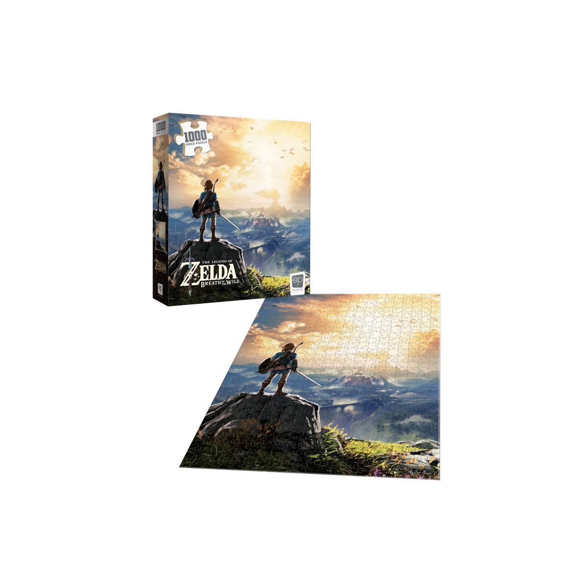 Revisit the open-world adventures of The Legend of Zelda action-adventure hit with the Breath of the Wild 1,000-piece jigsaw puzzle depicting Link overlooking Hyrules vast topography, as seen on the multi award-winning games cover art. Celebrate the wild vastness of Hyrule with this collectible jigsaw puzzle featuring Link overlooking Hyrule Castle from The Legend of Zelda Breath of the Wild from Nintendo.