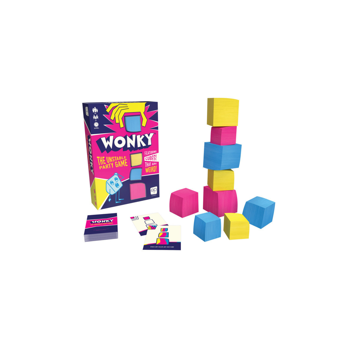 Do you wanna get WONKY? Let's get WONKY - Trip up your opponents as you stack a large Wonky cube on a small one and make the tower wobble!