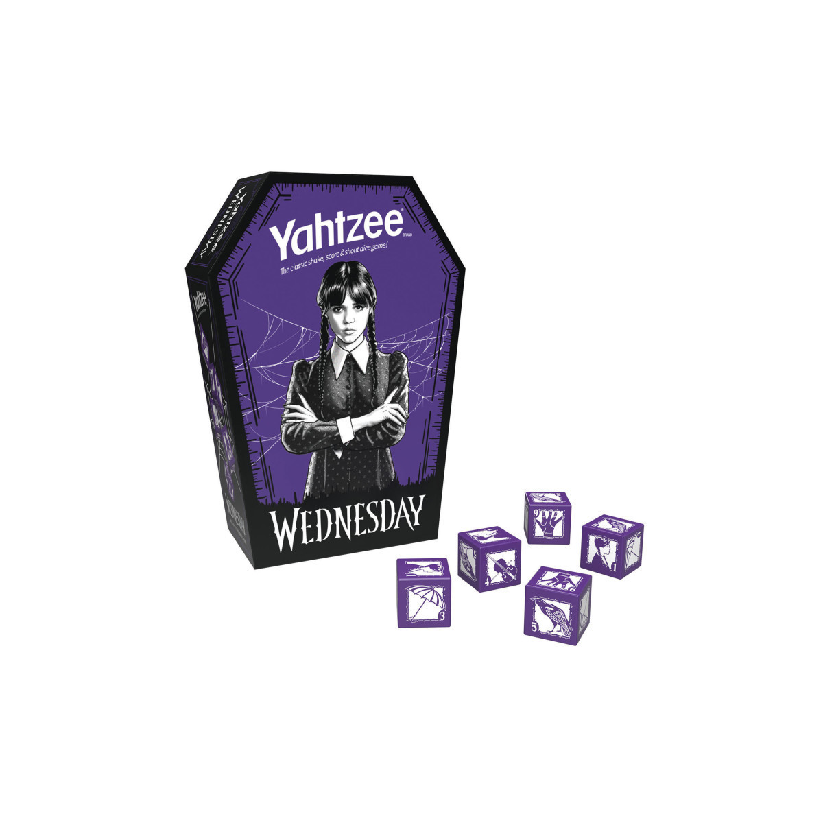 Includes 5 custom Wednesday dice, score pad, pencil, and rules