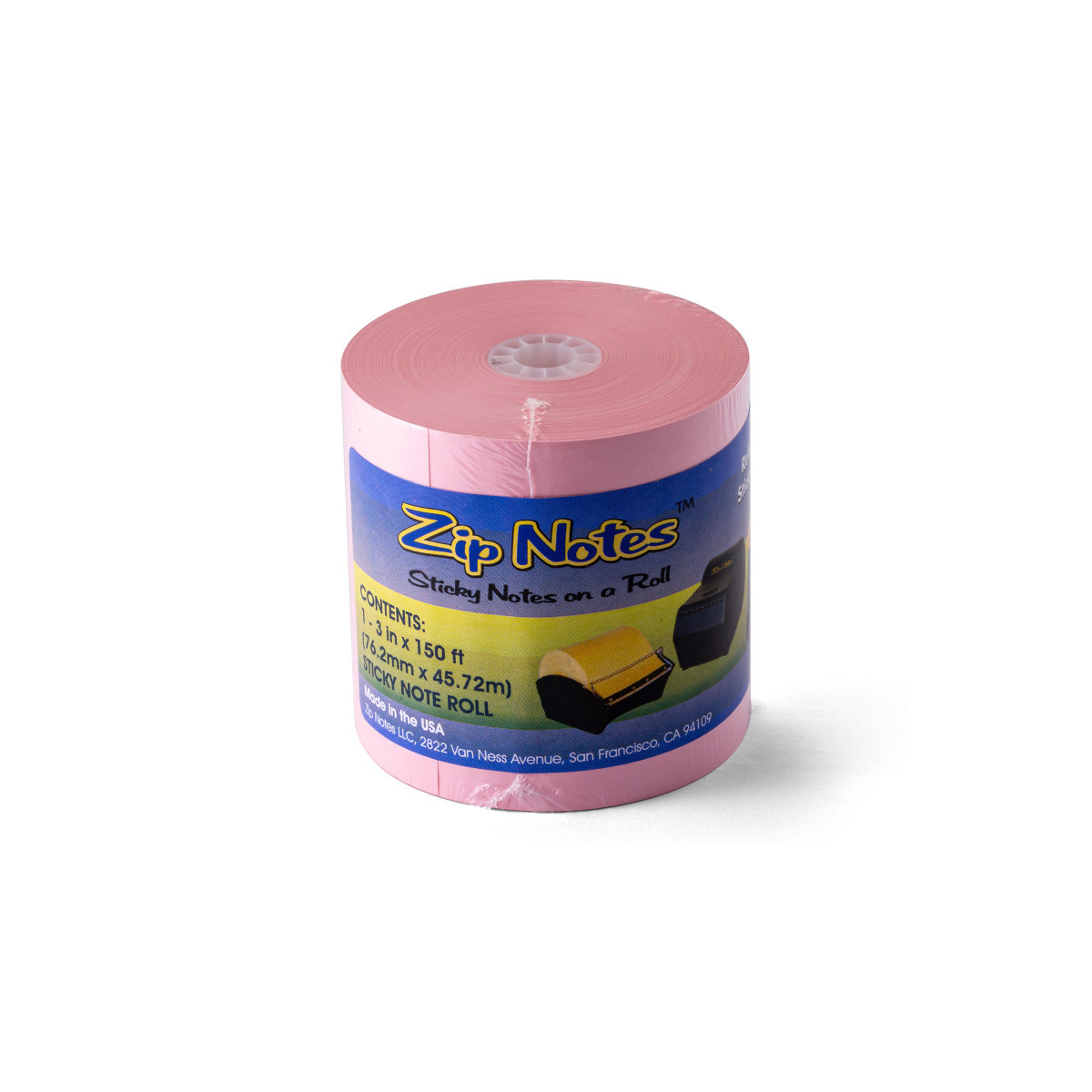 Refill roll for Zip Notes™ dispensers. Any size stick note you need, even banners. The 150-ft roll is equal to 600 3"x3" notes. Unique center adhesive for strong, yet repositionable hold. Pink. Create any size stick note you need, even banners