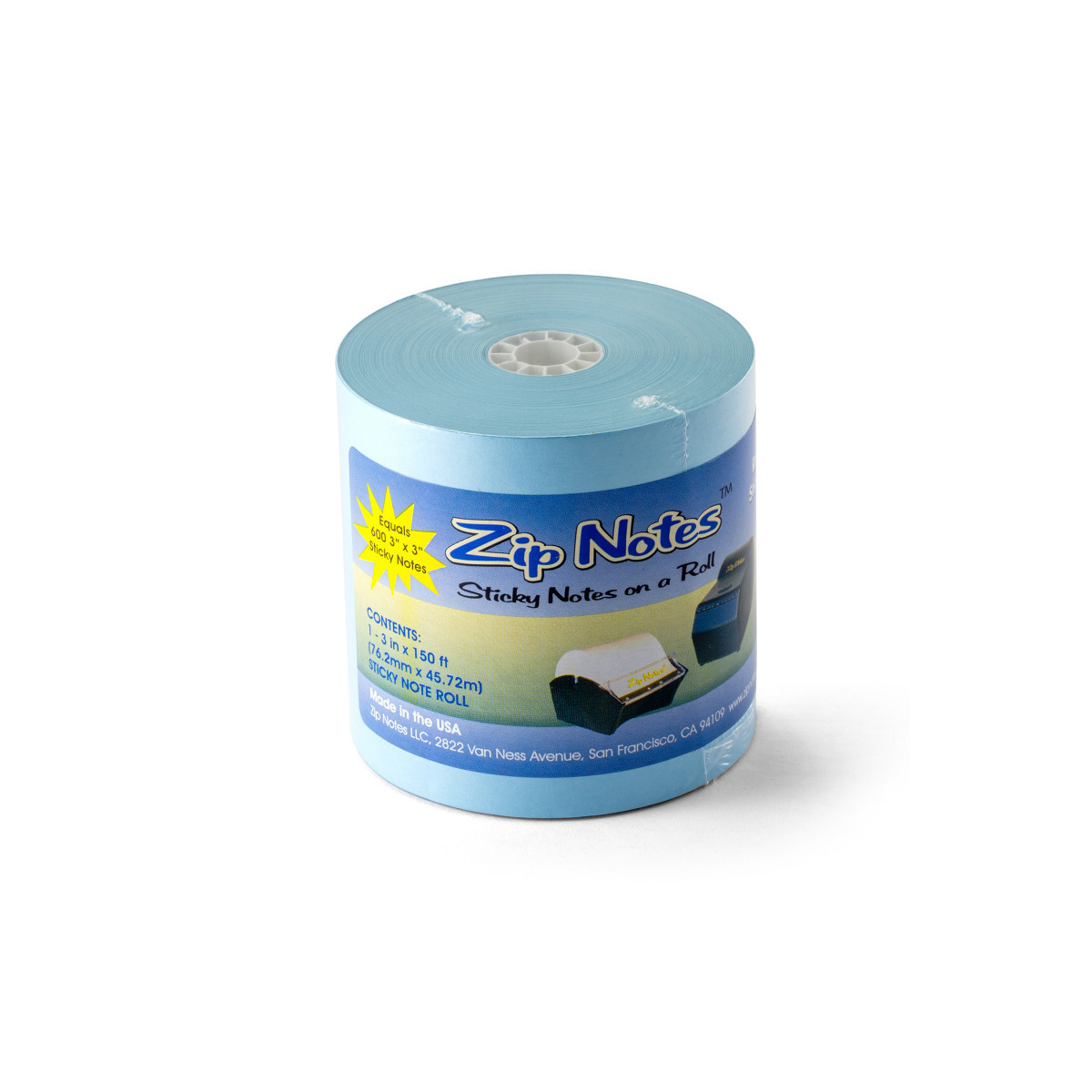 Refill roll for Zip Notes™ dispensers. Any size stick note you need, even banners. The 150-ft roll is equal to 600 3"x3" notes. Unique center adhesive for strong, yet repositionable hold. Blue. Create any size stick note you need, even banners