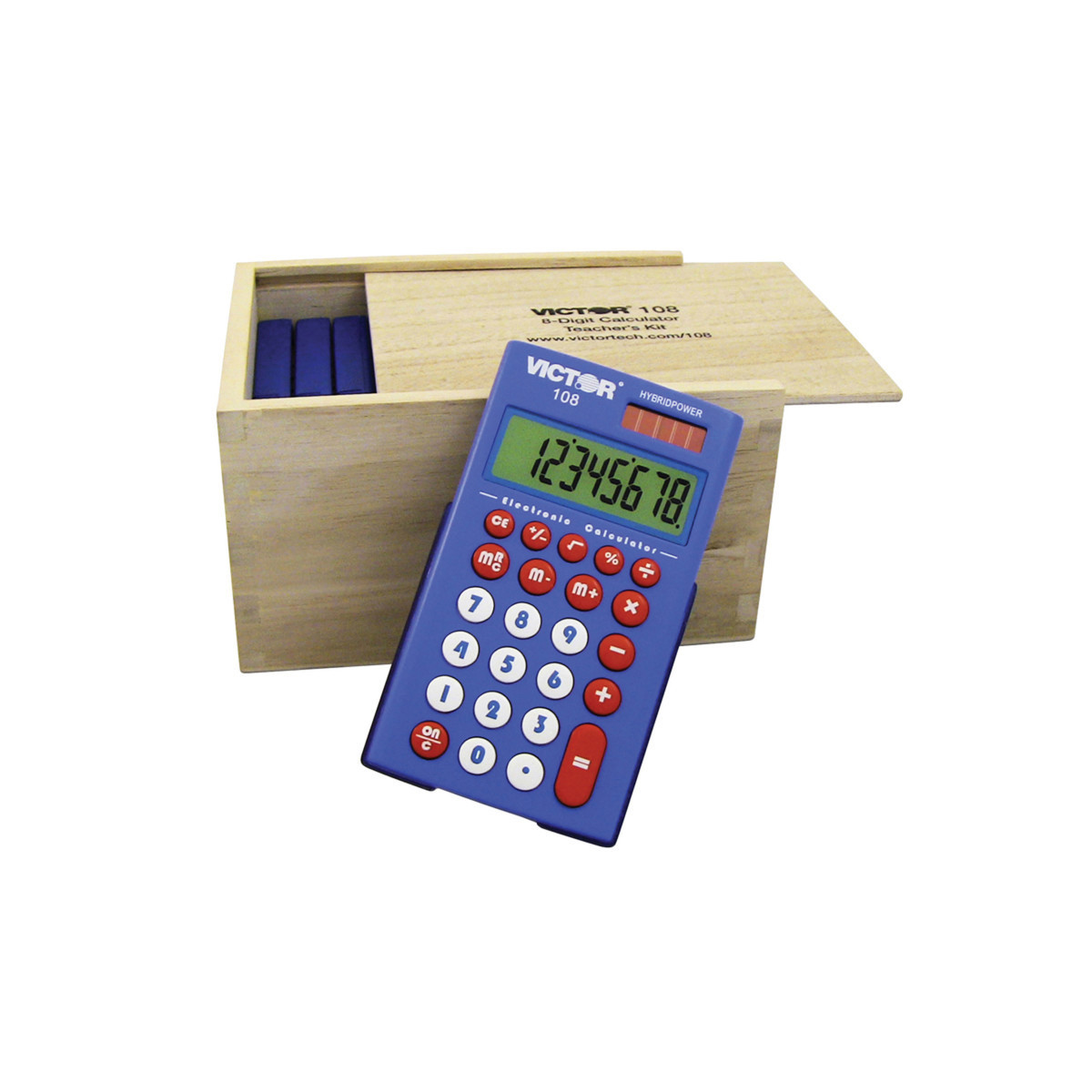 The Victor 108TK is perfect for classrooms. Kit includes 10 calculators in an eco friendly wood caddy. Teachers kit also includes electronic educational materials that you can download and print only what you need for your lesson plans.