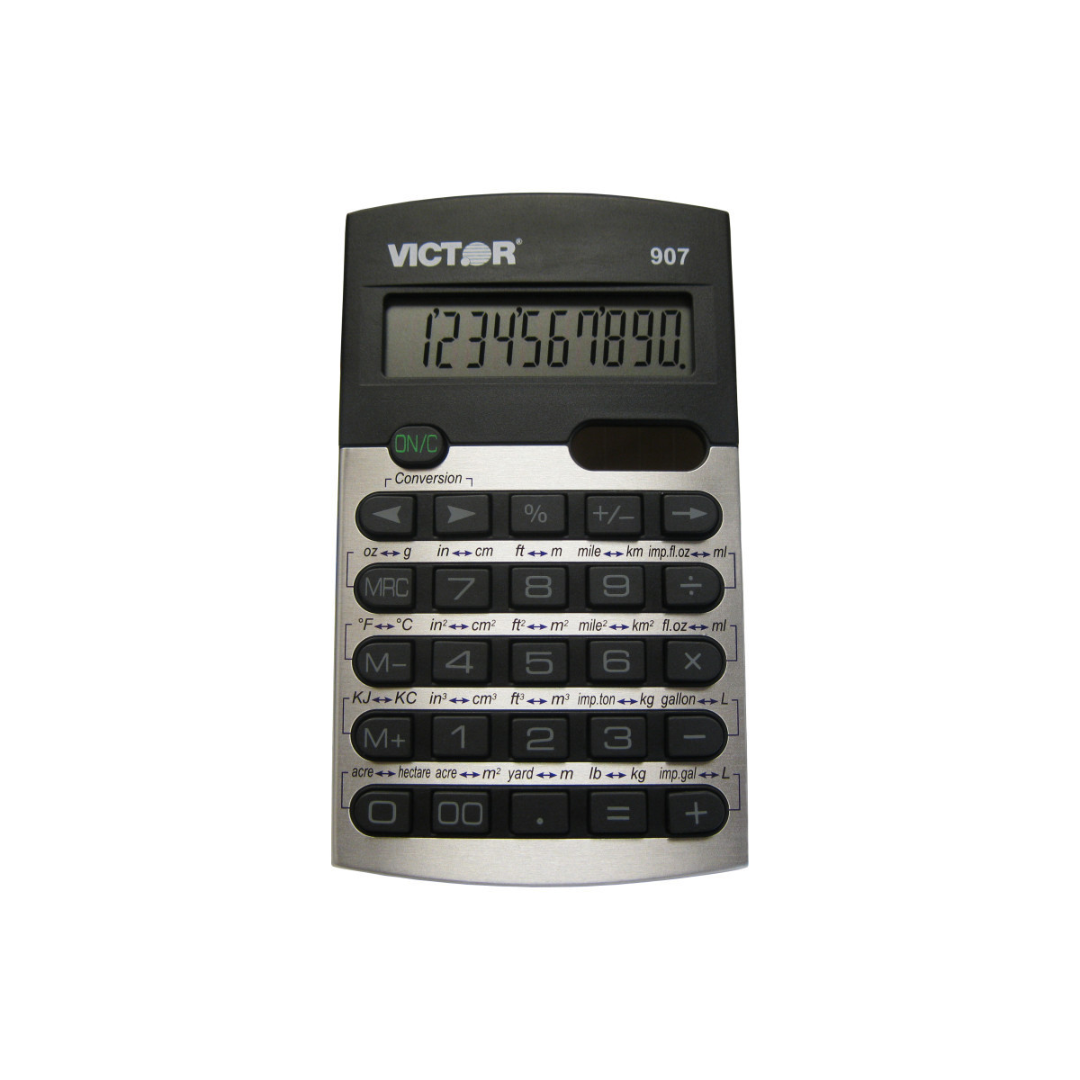 The Victor 907 features 20 built-in metric conversion functions including: length, area, capacity, weight, volume, energy and temperature conversions. Navigate through equations with ease using percent, change sign, square root keys, and more.