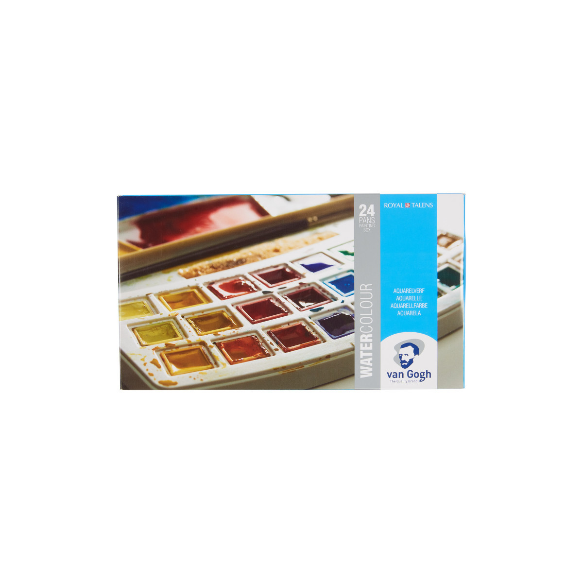 Van Gogh water colors are rated as a student and artist level paint range. They feature brilliant, transparent, and intense colors with high tinting strength. Most colors are rated with the highest degree of lightfastness +++ (100+ years under museum conditions) with a few colors rated just one step below at ++ (25-100 years under museum conditions). Thanks to the purity and uniform viscosity, these water colors are easy to work with and easy to mix. Proudly produced in Holland with stringent quality control for a consistent experience with every purchase. This 24-half pan water color set is packed in a plastic pocketbox, and also includes a round synthetic hair brush (size 6) and a sponge.
