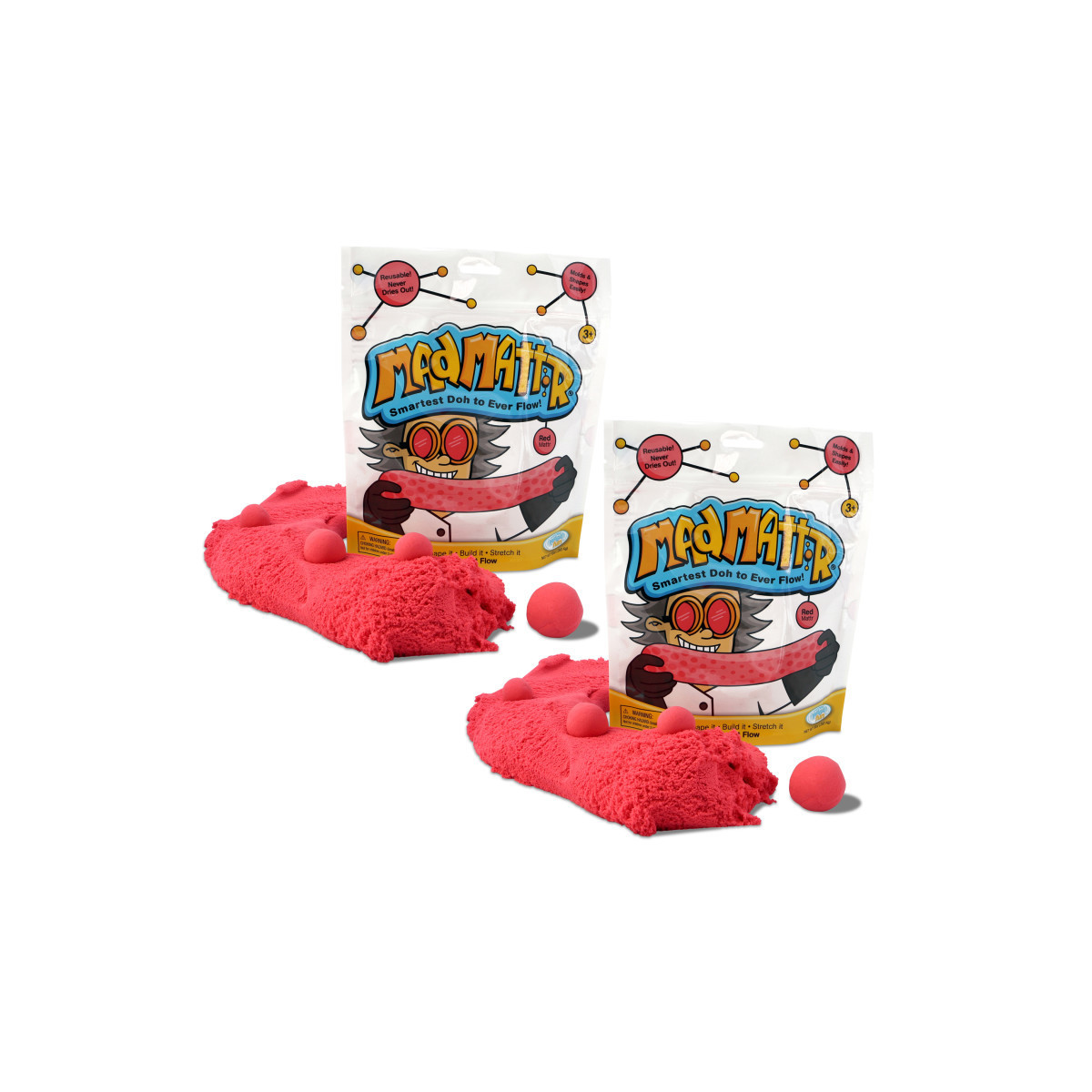 Stretch your creativity to the max... with Mad Mattr! An addictive super-soft modeling compound that molds and shapes easily. Make whatever comes to mind. Press it, mold it, knead it, stretch it, squeeze it, sculpt it... or just stretch it slow and watch it flow! Each bag contains 10 ounces. Sold as a 2 bags.