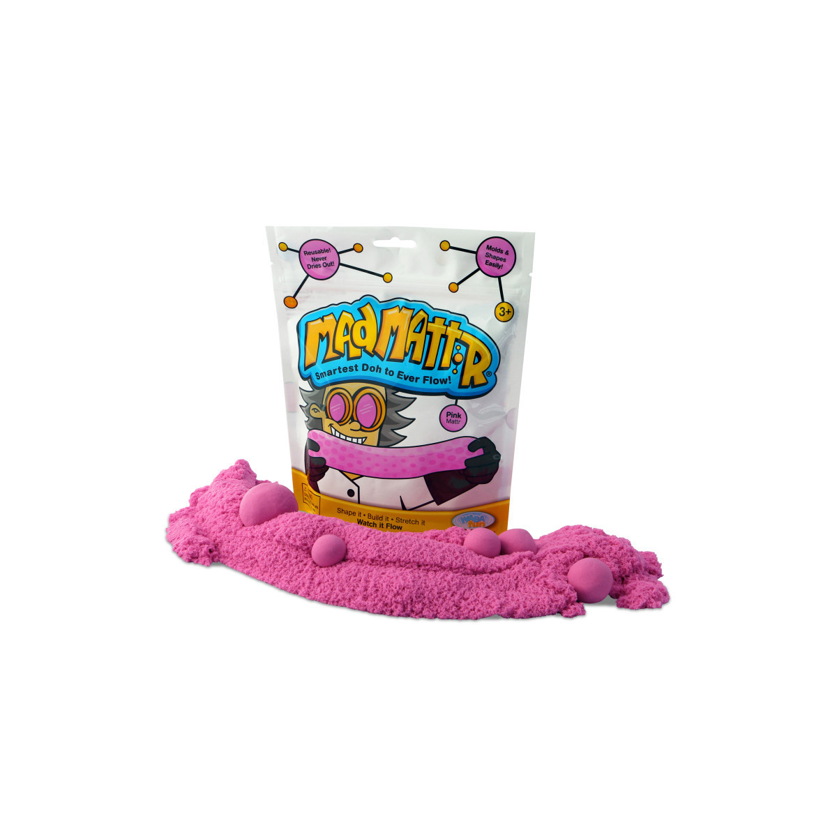 Stretch your creativity to the max... with Mad Mattr! An addictive super-soft modeling compound that molds and shapes easily. Make whatever comes to mind. Press it, mold it, knead it, stretch it, squeeze it, sculpt it... or just stretch it slow and watch it flow! The non-toxic formula is wheat, gluten, and casein free. Each pack contains 10 ozs.