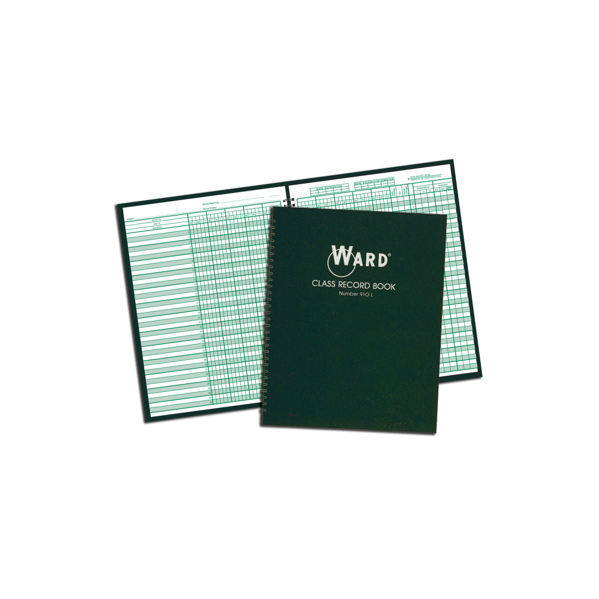 Ward books are as durable as they are functional, featuring the heavy, dark green cover material that users have come to rely on in WARD products. All WARD CLASS RECORD BOOKS are printed in green ink on quality white paper and bound in a durable, deep green cover. Semi-concealed wire binding allows the book to open flat for ease of use. Memorandum sheets and seating charts included in all books. Page size 8-1/2 x 11 with 38 student names per page. Four grading periods with grading sheets for 36 to 40 weeks of school and 16 classes per year.