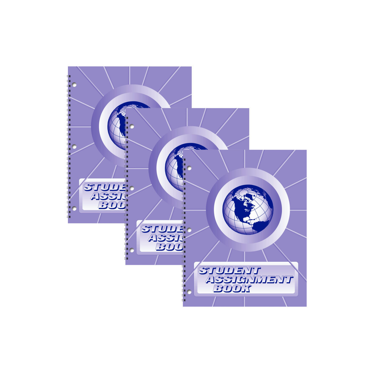 Student Assignment Book with weekly assignment sheets for up to 40 weeks of school. Includes: Homework Tips/Student Responsibilities, Class Schedule, Schedule of School Events/Long Range Assignments, and Goal/Achievement Record. 3-hole punched to fit a 3-ring binder. Sold as a pack of 3 identical books.