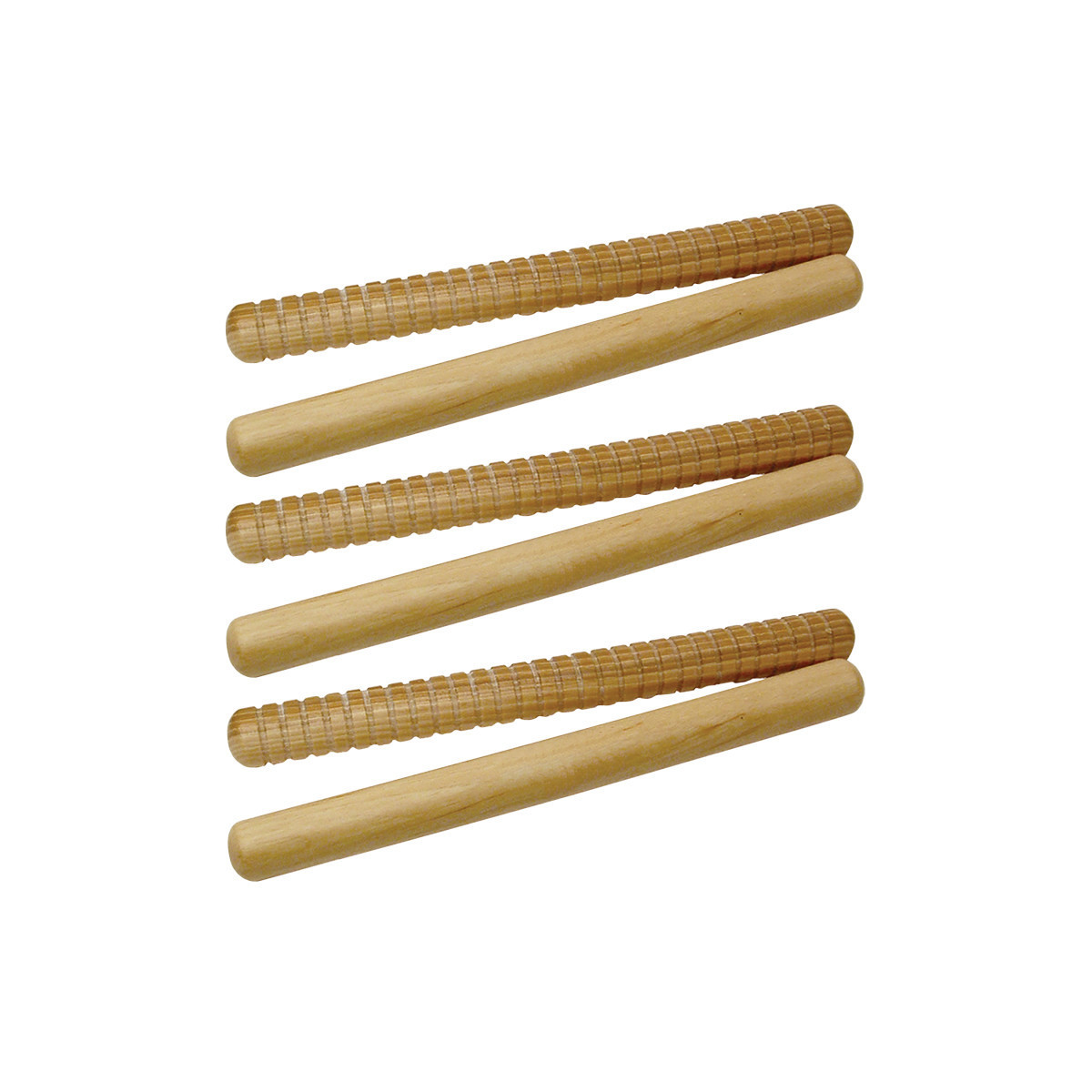 Combination rhythm sticks, perfect for early childhood use. Includes one smooth and one ridged stick per pair. Made of American hickory with a natural finish. Great way to introduce children to music. Sold as a pack of 3 pairs.