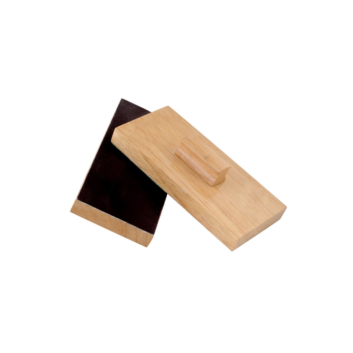 A popular instrument for all children. Features a handle on top and sandpaper on the bottom which creates a fun scratching sound when rubbed together. Made of wood with a natural finish. Helps develop motor skills.