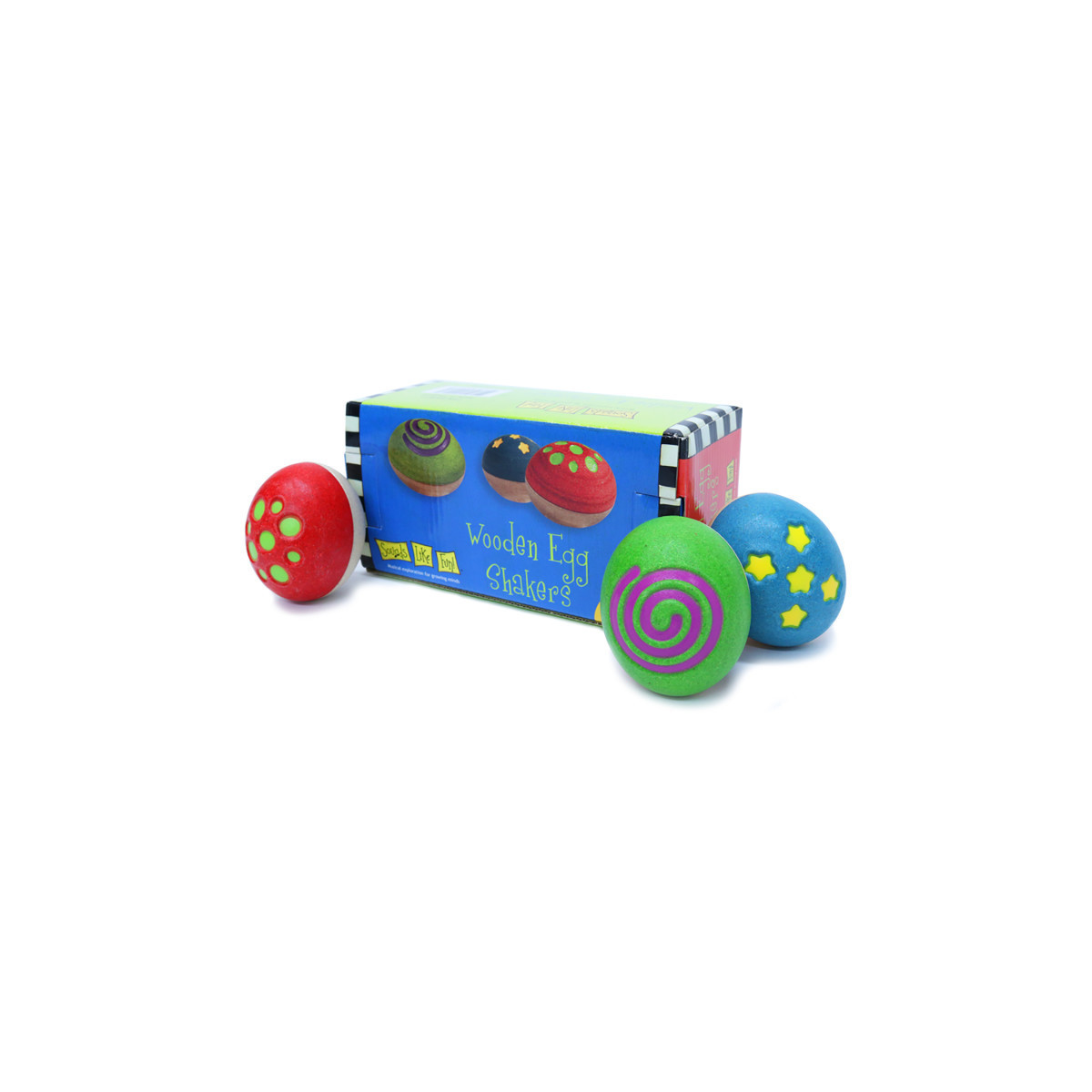 Wooden Egg Shaker comes a set of three different designs in a beautiful multi-colored counter box