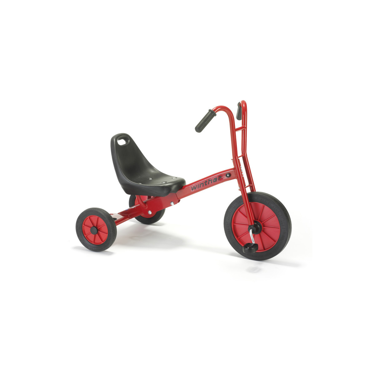 An exciting alternative to the classic tricycle. The adjustable seat means the Tricart can be used by children of many different ages. Harmonious, safe design with no sharp edges. Strong, oval-shaped tubes ensure maximum strength. Rubber stops to ensure children do not get fingers caught. Spokeless wheels with solid rubber tires. Strong, non-slip pedals. Solid one-piece steel crank.