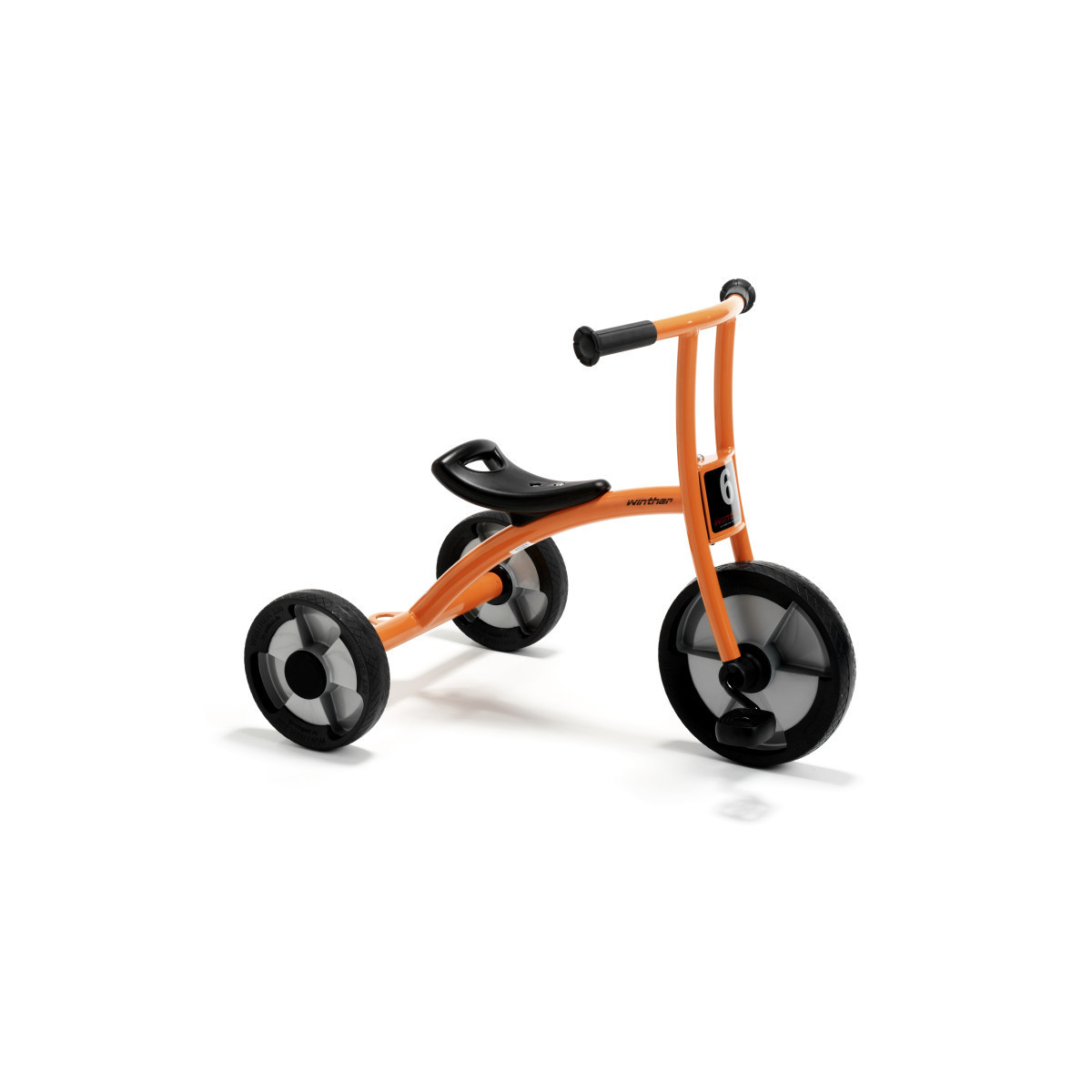 A very popular, robust tricycle suitable for most children. A tricycle is a must on every playground. It stimulates the play of children and develops children's motor skills. Built-in steering limiter. Attractive new design with no sharp edges. Strong heavy duty tubes ensure maximum strength. Pedals and spokeless wheels made of polypropylene with solid rubber.