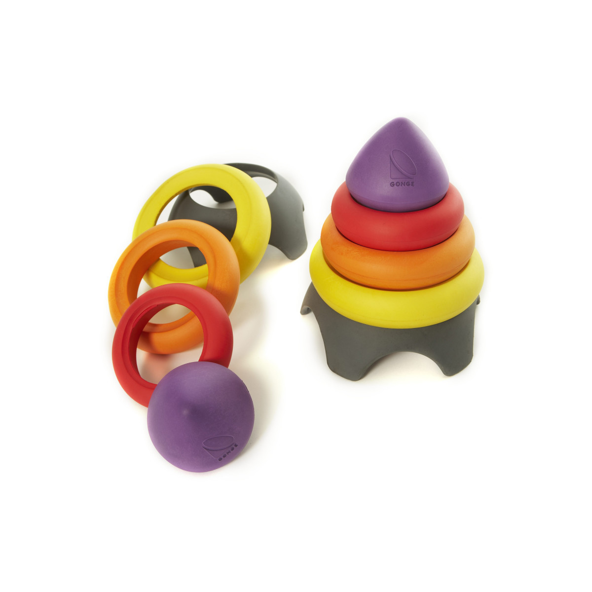 The Clown's Hat encourages small children to perform - because it is not easy to balance with something on your head! Concentration and balance are required to wear the Clown's Hat which develops body consciousness and attention to posture. Playing with the Clown's Hat can be both individually challenging and form part of competitive scenarios. The Clown's Hat is shaped to make it easy for small children to use and the parts are so soft that dropping the rings does not hurt. Measures 6.69" x 6.69" x 7.48".