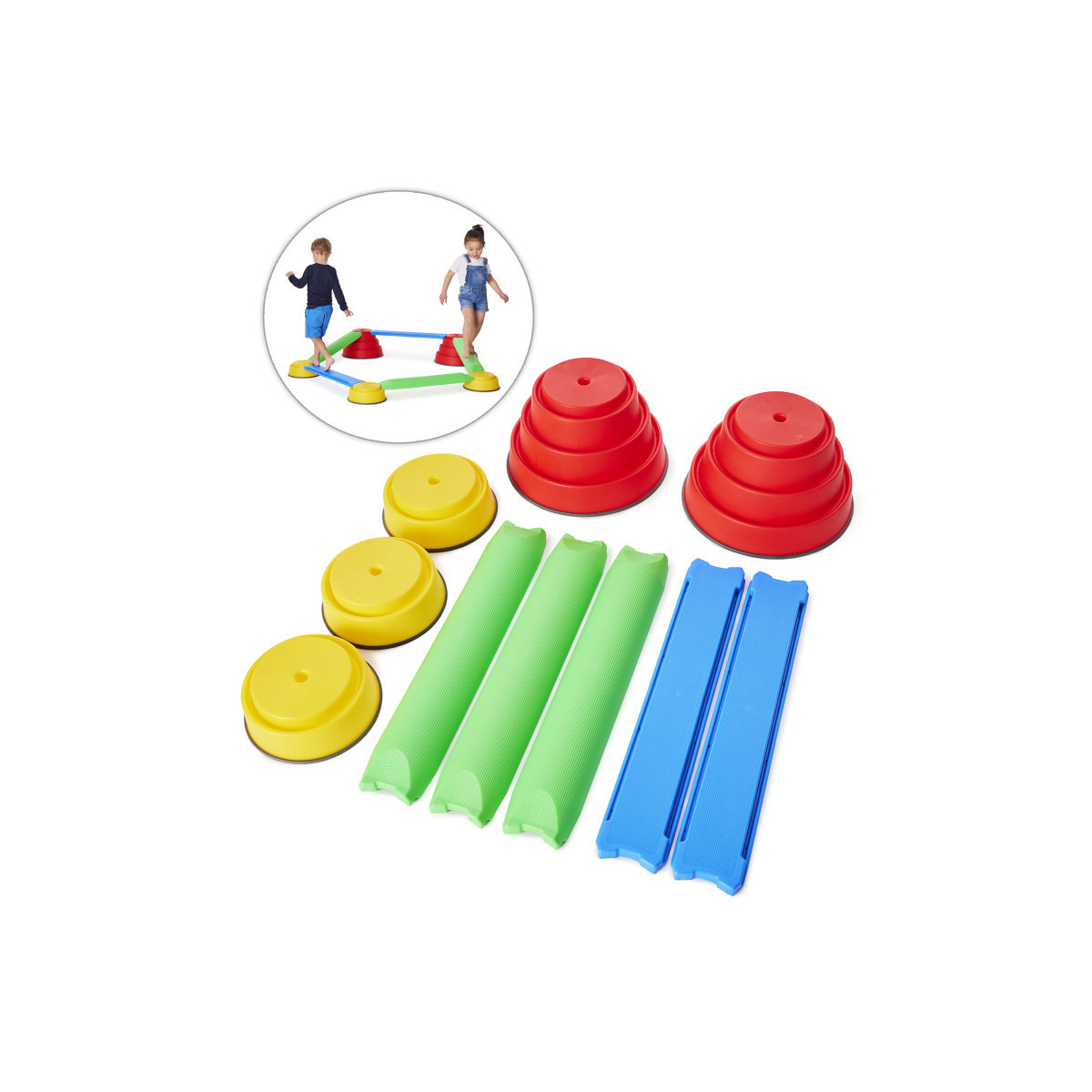 Exciting and challenging balancing system. The elements can be combined in countless ways so use your imagination to set up all the balance courses and landscapes you can build. With the great flexibility of Build N' Balance®, the level of difficulty can be varied to suit the development levels of the children and can be built at heights ranging from 10 to 24 cm - depending on how brave the children are!