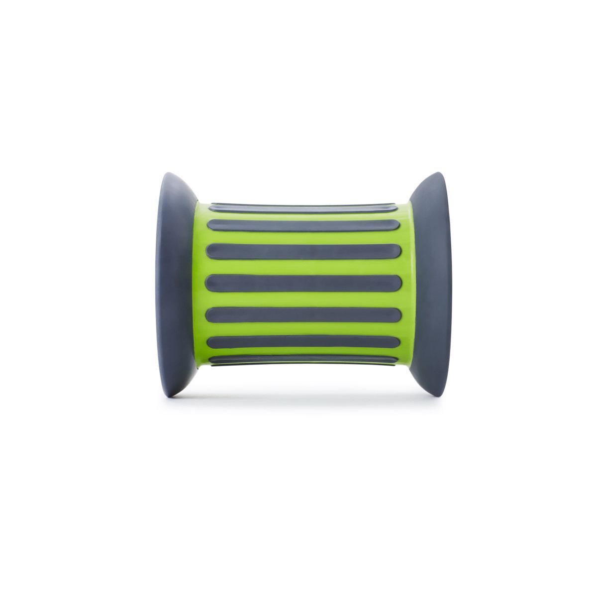 The Roller is safe to use, as the compression of its rubber tires naturally reduces the speed while making play virtually silent and protecting the ground surface from damage. The rubber tread provides a safe grip and offers additional tactile stimulation when rolling with bare feet. For younger children, this green version of the Roller contains 5.5 lb of sand, further reducing the speed and enabling even small children to master balancing and rolling. Measures 13.78" x 15.55" x 11.61". Weight Capacity: 220.5lb.