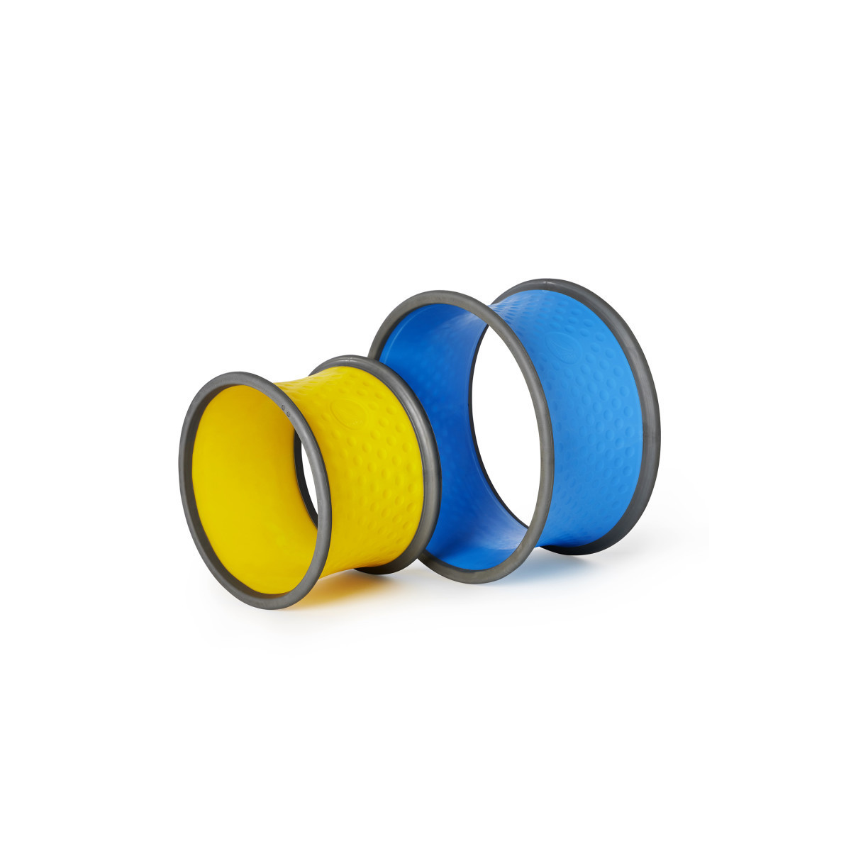 The body Wheel is an exciting physical activity designed to challenge children of all ages. Even small children can set the wheel in motion, providing an excellent exercise to practice body agility, strength and balance. The Body Wheel allows children to roll while lying on their back or stomach, or even while standing. Adults can assist small children in practicing how to tumble safely, with a soft landing, by slowly pushing the Body Wheel while the child is lying on their stomach. Multiple Body Wheels can also be stacked to form a tower, with the large hole in the middle allowing children to play in side or crawl through. The small wheel measures 18.11" Dia. x 11.8" W, and the large wheel measures 23.22" Dia. x 11.41" W.